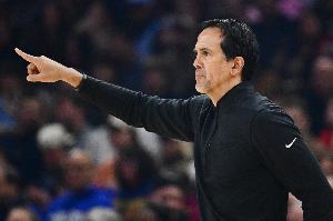 赛后热火主帅斯波尔斯特拉谈到了受伤的阿德巴约:他表示,他没看到阿德巴约身上发生了什么。他不觉得这“有趣”,并称这是一个“危险”的动作。