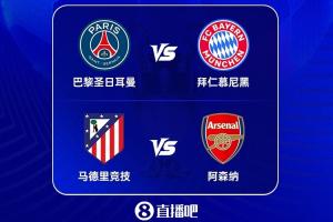 半决赛对阵随之敲定,巴黎将先主后客迎战拜仁,马竞则先主后客对决阿森纳。两回合角逐将于4月29日-30日及5月6日-7日凌晨展开。