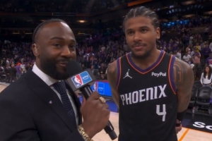 体育资讯4月18日讯 NBA附加赛,太阳111-96击败勇士,赛后杰伦·格林在赛场边接受了媒体采访,以下为采访全文。